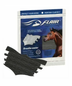 Store FLAIR Strips at room temperature.For best results apply FLAIR Strip 30 minutes prior to riding, exercise, or any other activity that might cause the horse to sweat.Use a clean, dry cloth or paper towel to remove dirt and oil prior to application.This placement provides optimal support for the soft tissue of the nasal passage.FLAIR Strips have a unique adhesive that is designed to flow into and adhere to the horse? hair.Touching the adhesive will reduce its ability to stick to your horse