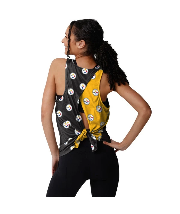 Features of Foco Pittsburgh Steelers Nfl Womens Wordmark Mini Print Tie Breaker Sleeveless Top – S