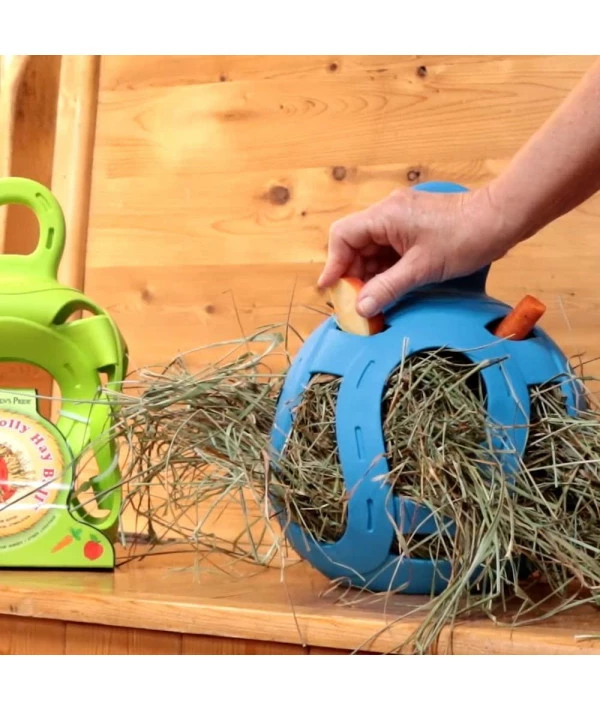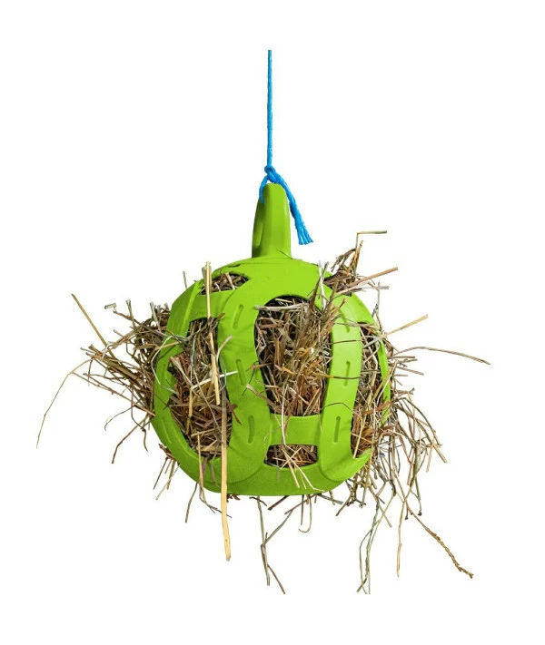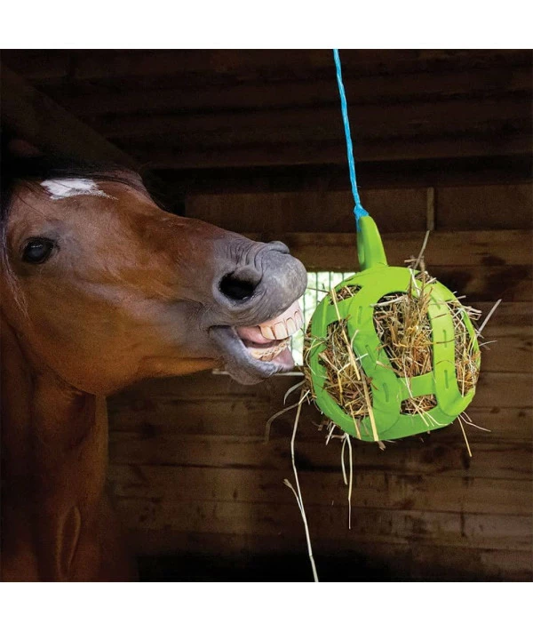 The Jolly Hay Ball allows you to fill it with hay and tuck in some treats like apples, carrots and more to give your horse hours of satisfying stable fun | Great for snacking and enrichment | Helps curb stall boredom | A great boredom breaker for horses stalled for long periods of time | Measures 8″ in diameter. The main purpose of the Jolly Hay Ball is to keep your horse busy, mentally stimulated and to relieve stress. | Item shape: Round | Unit count: 1.0