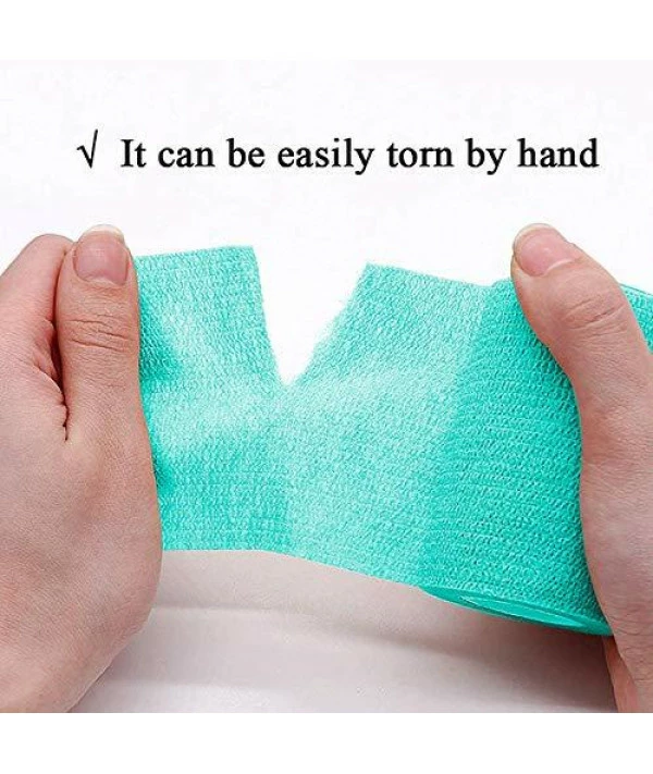STRONG SELF-ADHESIVE: Help to secure bandage wraps, relieve swelling and promote healing, ideal for strains and sprains. It won’t stick to your or your pet’s skin or hair, so there’s no pain when you rip it off, giving you a comfortable experience. | BREATHABLE AND ELASTIC : Porous fabric allows for ventilation so that the skin can breathe freely underneath, which is good for wound healing. The tapes are very elastic and lightweight, so they will not burden your wound. | WATER RESISTANT: The bandage is waterproof and strong self-adhesive, so you don’t have to worry about it slipping or loosening even if you sweat or touch the water. Thus it can be applied to sport protection as well. | WIDE APPLICATION: These tapes can be used to protect ankle, wrist, finger, toe, elbow, knee and other body joints. They are safe and can also apply to animals. This medical bandage kit is a must-have at home, pet hospital and in your gym bag. | EASY TO USE: Superbe self adhesive bandage adheres to itself easily ,which does not need clips or pins to fix them and can be readily torn by hand without scissors.