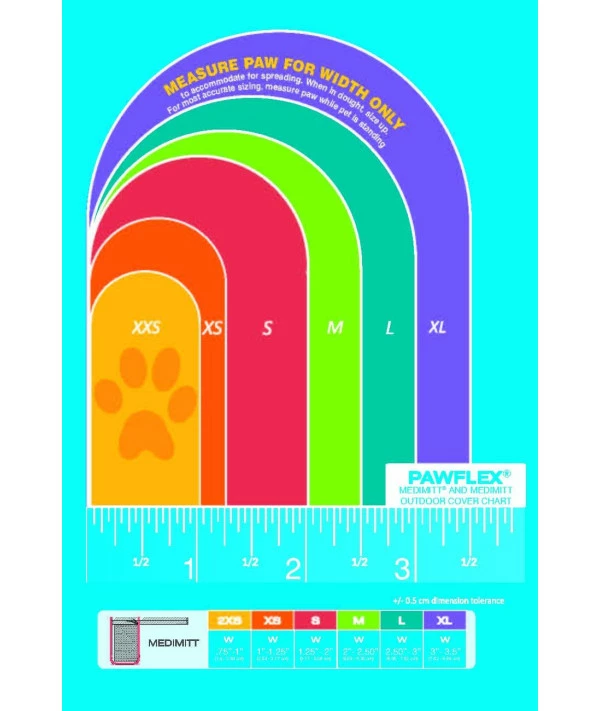20 pack of Medimitts : ADJUSTABLE FASTENER STRAP with PATENTED NON-SLIP fastening strap allows for strong and secure hold with the ability to adjust and readjust tension. Our PATENTED STRETCH NON-SLIP GRIP is laminated on inner wrist portion of Medimitt as well as on the underside of the fastening strap providing minimum slippage and secure hold while being flexible, comfortable and lightweight like a sock. | SPECIAL NOTE FOR USE: PawFlex Medimitt paw Bandages are packaged inside out. For use, gently turn right side in so that the attached wound pad is on the inside. Direct the paw into the Medimitt and wrap non- slip Hook & Loop adjustable fastening strap around petswrist. Never wrap fastening strap too tight. The Medimitt will stay on with gently stretch. | SUPER STRETCH, WATER RESISTENT & BREATHABLE MATERIAL. Breathable for faster healing, NO adhesives, absolutely no fur pulling or skin ripping; making PawFlex the most comfortable & hassle-free bandages on the market today! No wonder we are VET APPROVED | DISPOSABLE. Although PawFlex Bandages are disposable they are also very durable and often can behand washed to get several uses from 1 Medimitt. Not intended for outside use…Indoor Use only is recommended. For outdoor capability, Try our Medimitt Outdoor waterproof cover which slides over the Medimitt and utilizes the same strap (purchased separately) | Size XL- Paw width measurement when standing: between 3-3.5best for dogs 85- 120 lbs. with big paws. English & Bullmastiff, Great Dane, Saint Bernard, large Rottweilers, Newfoundland, Irish Wolfhound, Great Pyrenees, Blood Hound & more. Some giant breeds paw will be too big even for our XL. Please measure Width when standing If measurement is at very end or over, the XL will likely be too tight and not recommended to purchase. IF YOUR DOG CHEWS/PULLS OFF THEIR BANDAGE YOU MAY STILL NEED CONE