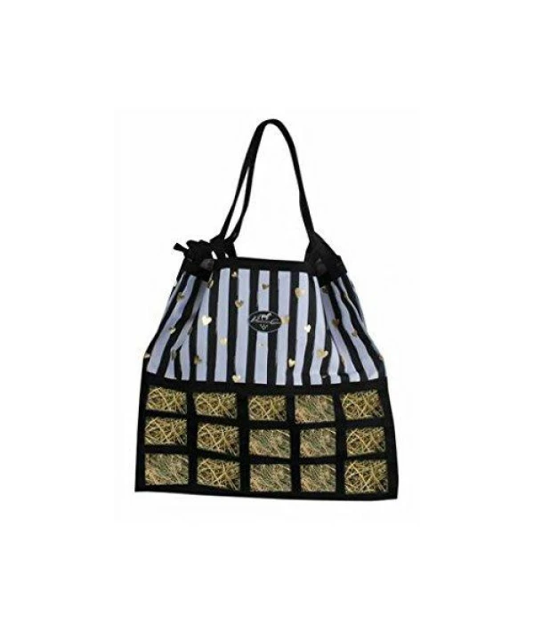 Free of any hardware, this medium feed hay bag is specially designed not to scratch your trailer. The top draw string closure opens fully to allow easy top loading, as well as height adjustability and is complete with reinforced webbing loops and a heavy duty rope. The medium feed encourages horses to eat slowly for proper digestion. 30-Day Money-Back guarantee or as required by law. color: Aztec