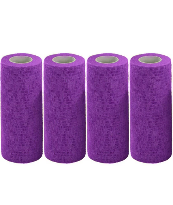 Vet Wrap Tape Bulk 6 Inch Self-Adhesive Cohesive Bandage Wraps Wide Bandages for Horses Dogs Cats Animals Pets, Purple, 4 Rolls