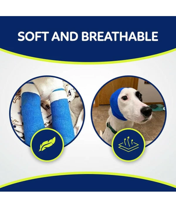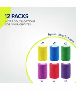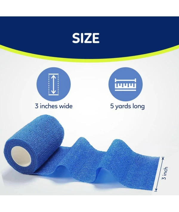 Features of WePet Pet Wrap, Self-Adhesive Non-Woven Tape for Dog Legs, Paws, Wounds, First Aid Cohesive Gauze for Horse, Cat, Bird, Animal, 12 Rolls, 3 Inch, Solid